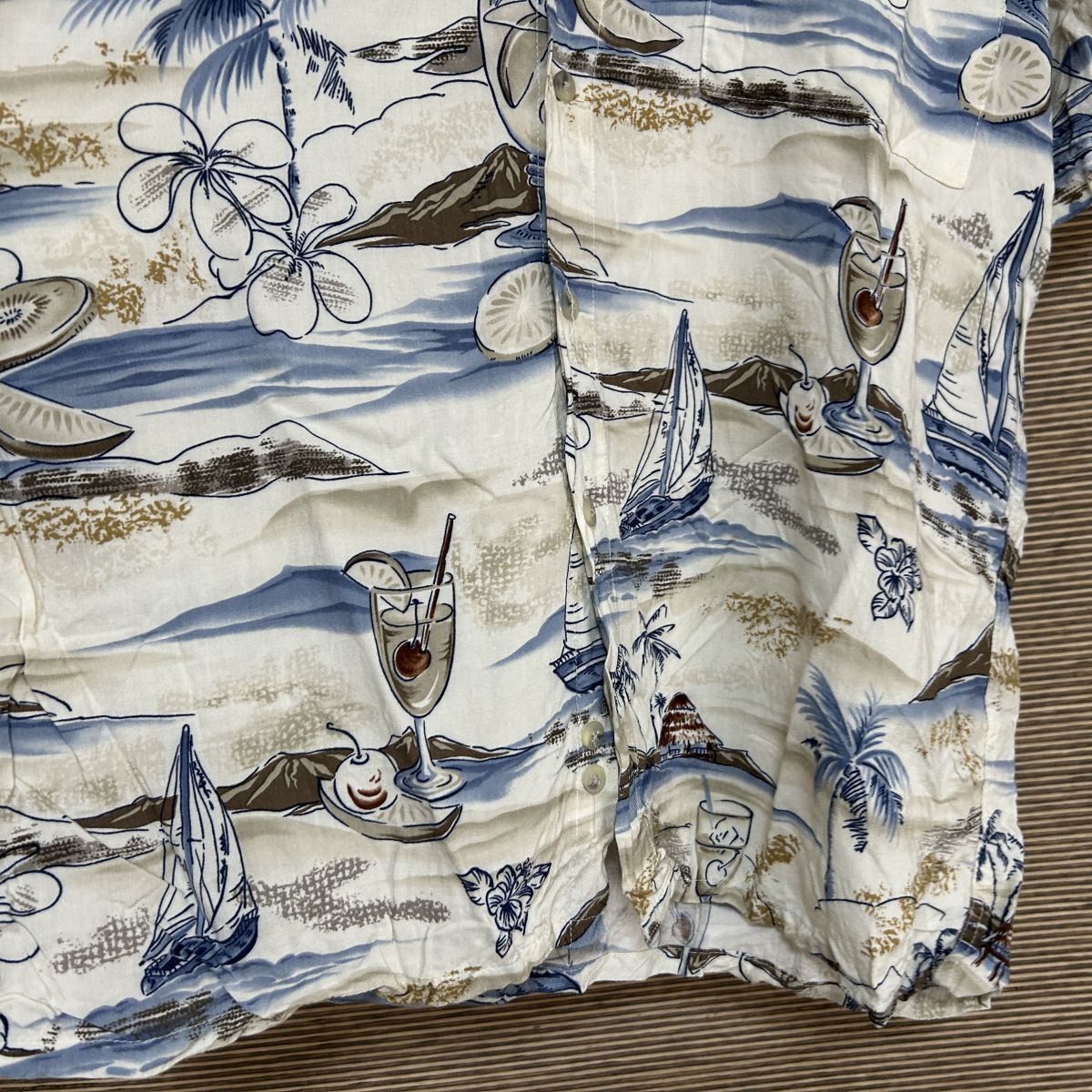 アロハシャツ 総柄 レーヨン ベージュ カクテル ヤシの木 フルーツ*6古着 入手困難 激レア希少人気 ボタニカル ヨットサクランボ 收藏