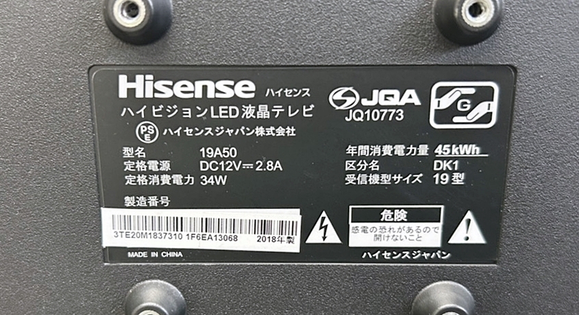 ハイセンス ハイビジョン液晶テレビ 19V型 2018年製 19A50 19インチ 液晶テレビ FN0724-1