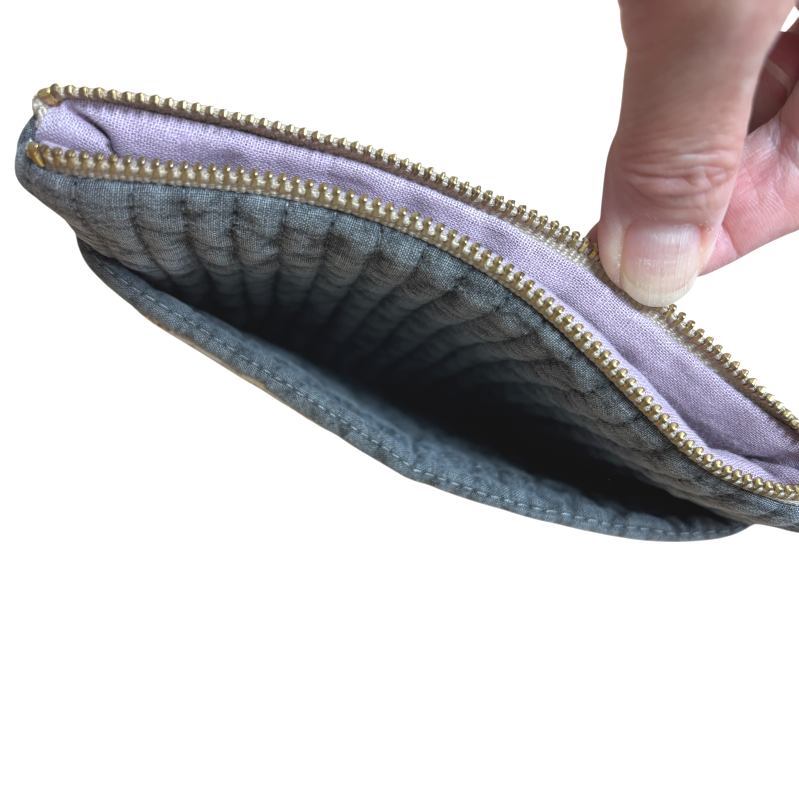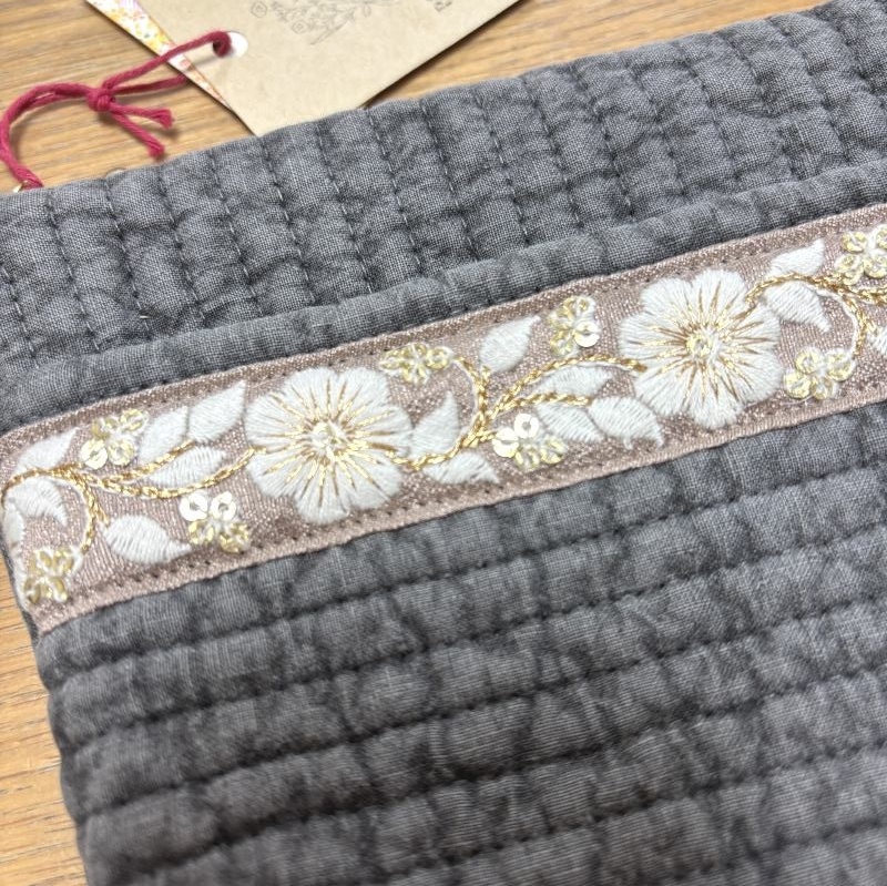 ハンドメイド 小分けポーチ サニタリーポーチ コスメポーチ ファスナーポーチ インド刺繍リボン グレー 收藏
