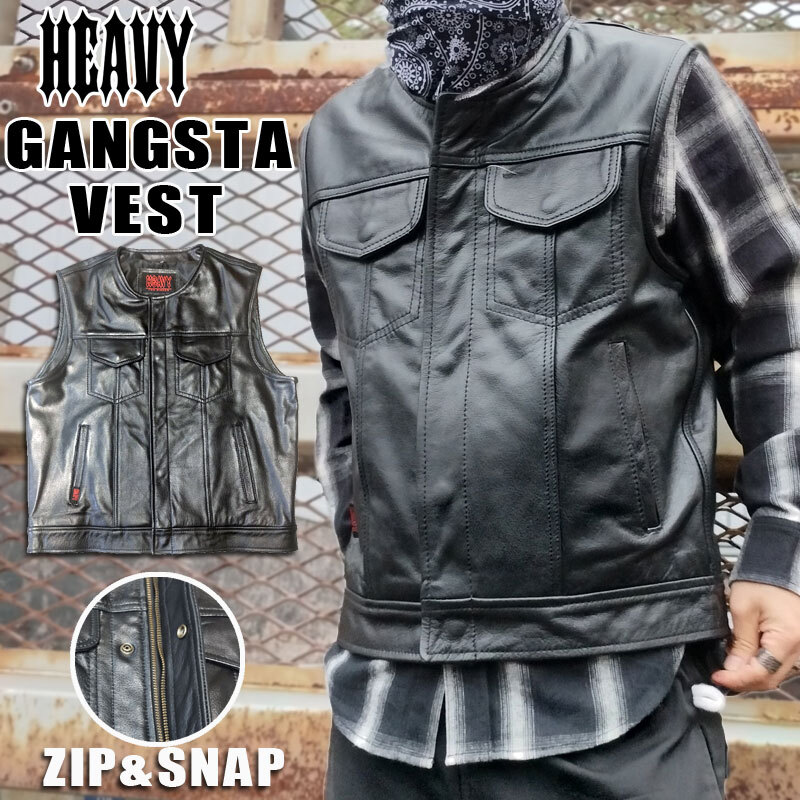 (48インチ)HEAVY 《ギャングスタベスト》 ジップ&スナップ モトブルーズ GANGSTA VEST 襟なし 收藏