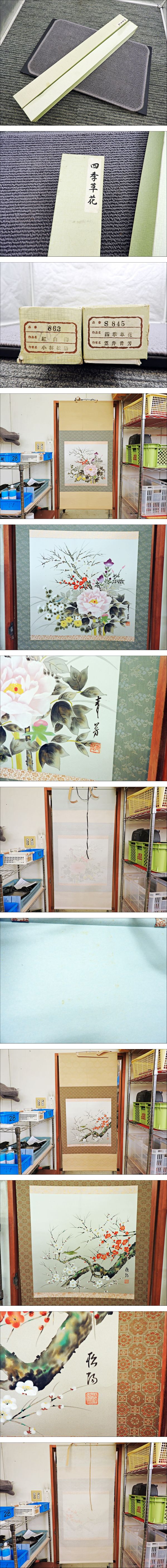 掛け軸 2幅セット■笠井 青芳/四季草花 品番:S845●小林 松陽/紅白梅 品番:863 2本セット 状態良好 模写■箱付 中古品「管理№KT491」 收藏