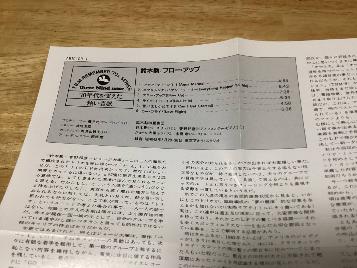 ★国内初盤 1A1★TBM/ART01CD 1/BLOW UP/ブロー・アップ/鈴木勲/three blind mice/ディスクユニオン盤/3500円盤/1985年盤 收藏