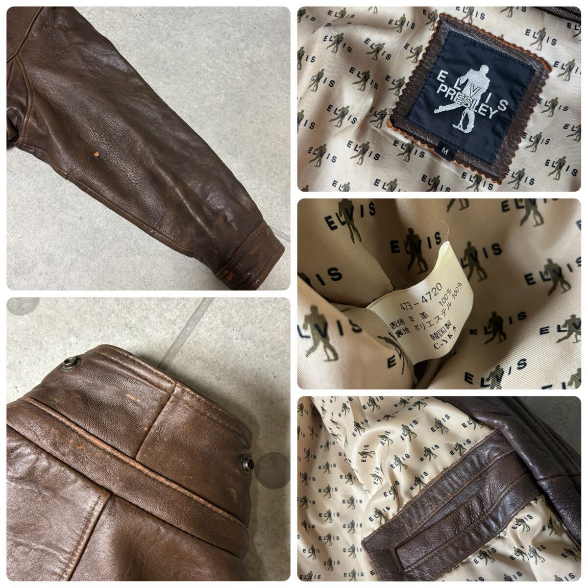 ELVIS PRESLEY フライトジャケット G-1 A-2 レザージャケット 羊革 エルヴィス・プレスリー ラムレザー 短丈 裏地柄 ブラウン M 收藏