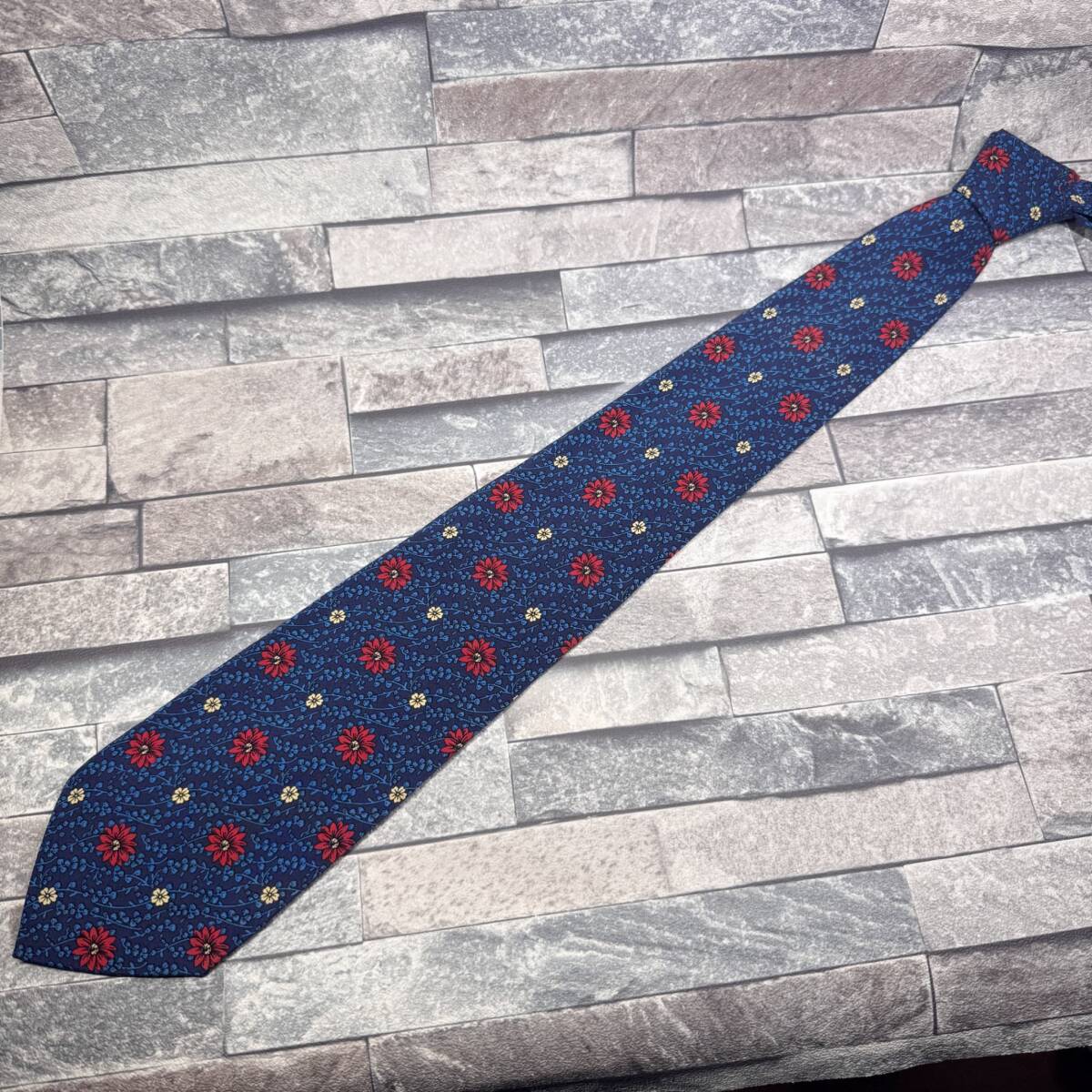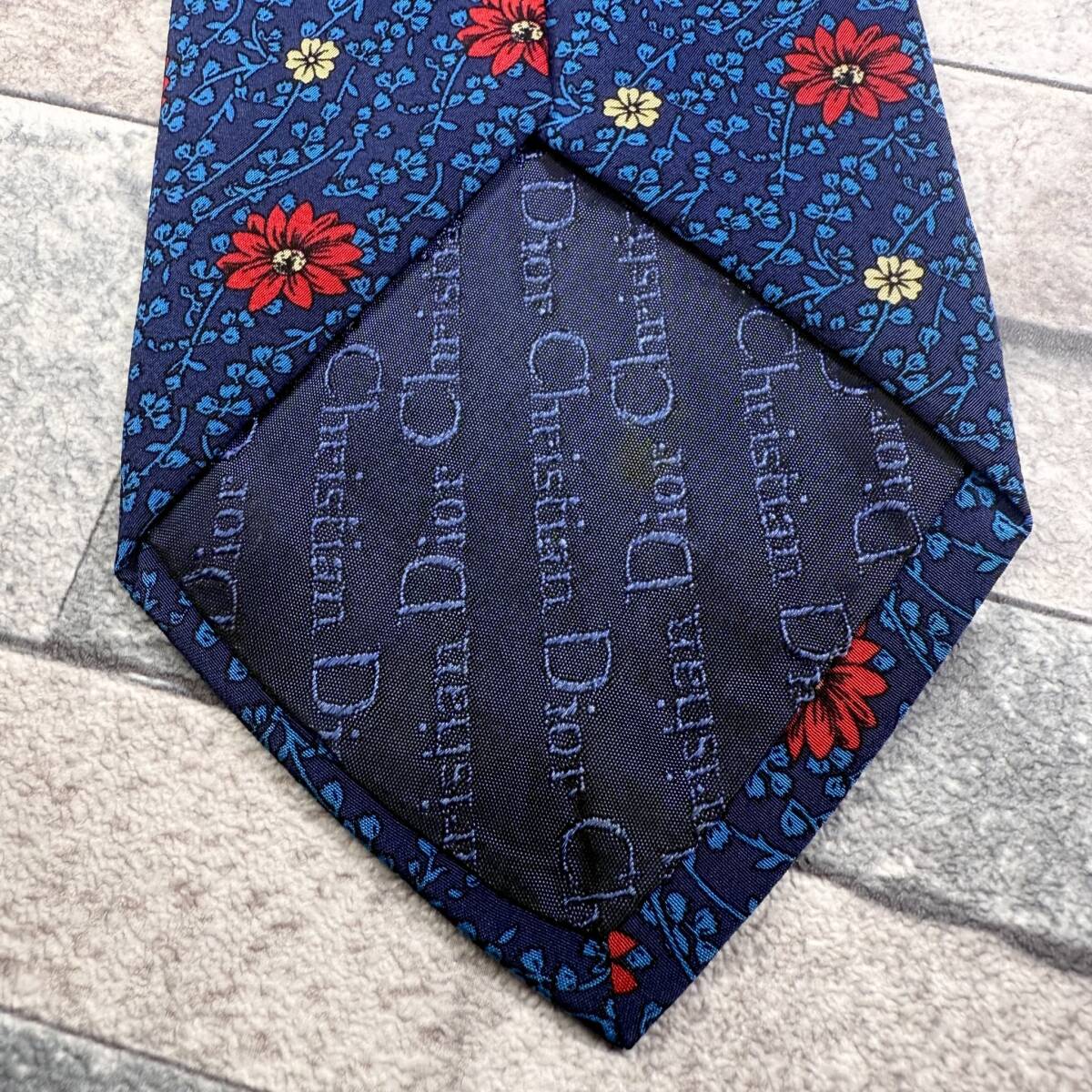 ▼Christian Dior▼クリスチャンディオール ネクタイ ボタニカル フラワー ネイビー 小紋柄 メンズ 中古 宅急便 即決 收藏