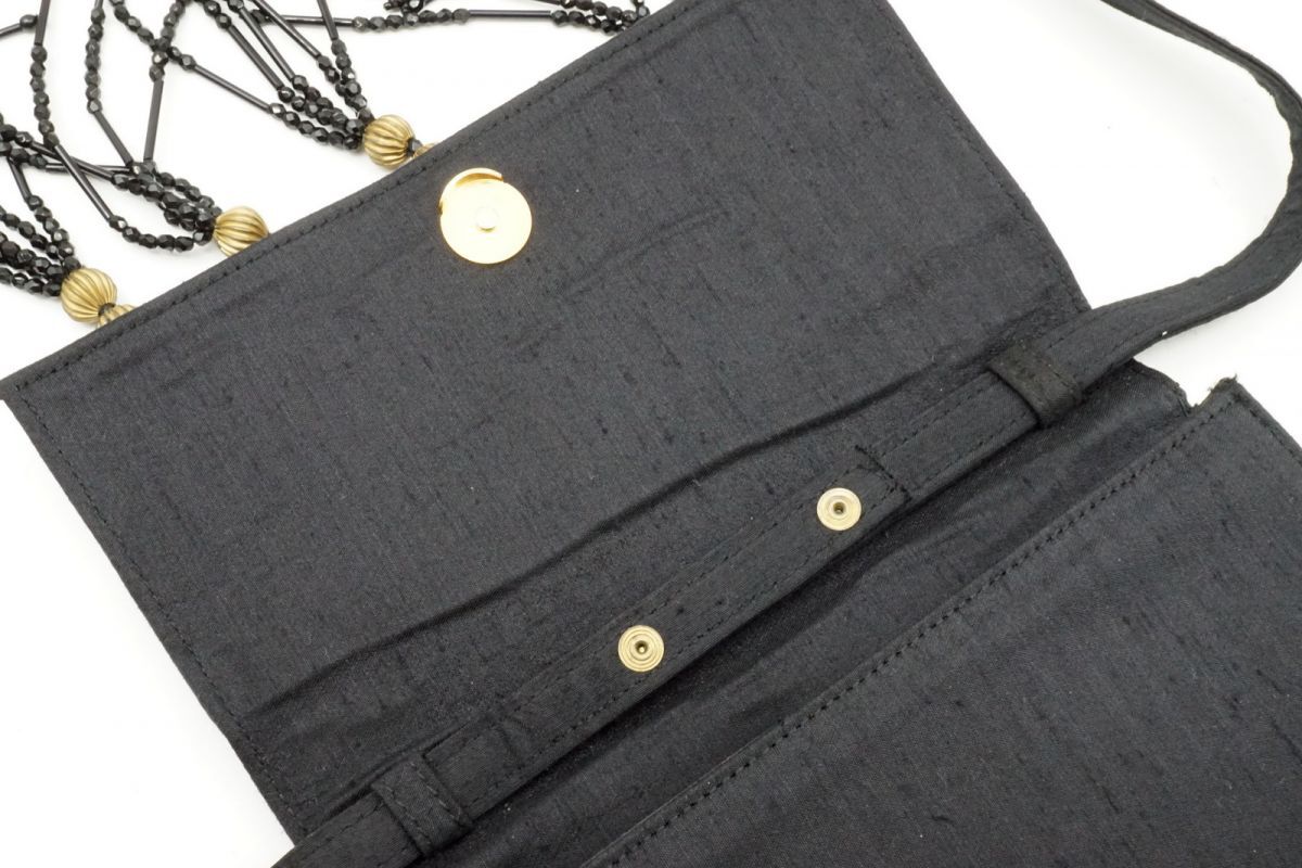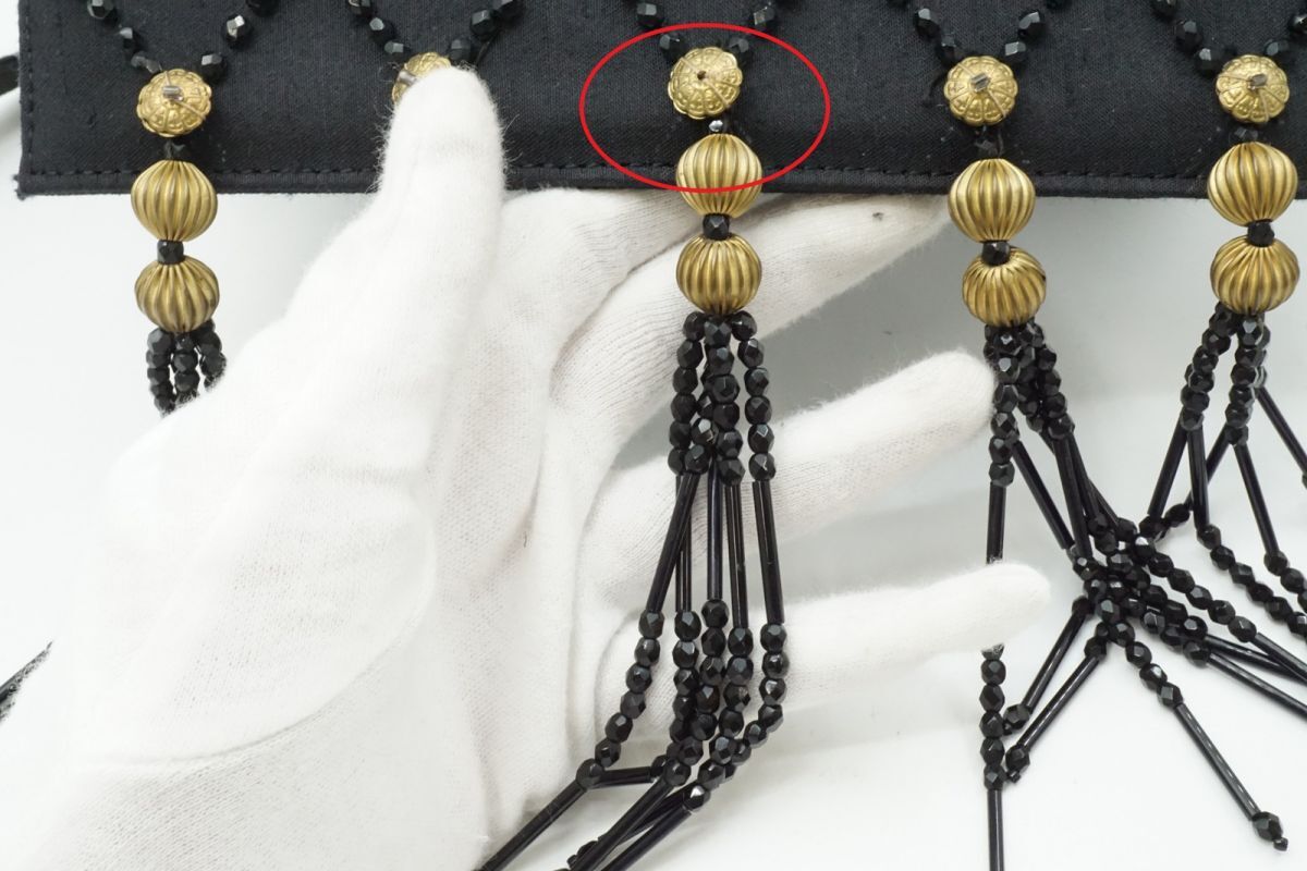 ジャンニ ヴェルサーチェ ヴィンテージ 2way ショルダーバッグ ビーズ タッセル シャンタン風生地 キャンバス 黒 GIANNI VERSACE 3628h 收藏