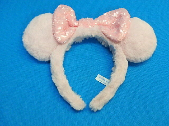 nk15-25-0912-1 ディズニー カチューシャ ミニーちゃん もこもこ ふわふわ スパンコール ピンク 東京ディズニーリゾート 中古 收藏