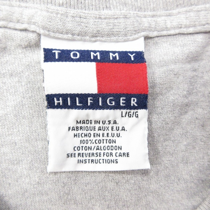 XL/古着 トミーヒルフィガー 半袖 ビンテージ ブランド Tシャツ メンズ 90s ビッグロゴ 大きいサイズ コットン クルーネック グレー 霜降り 收藏