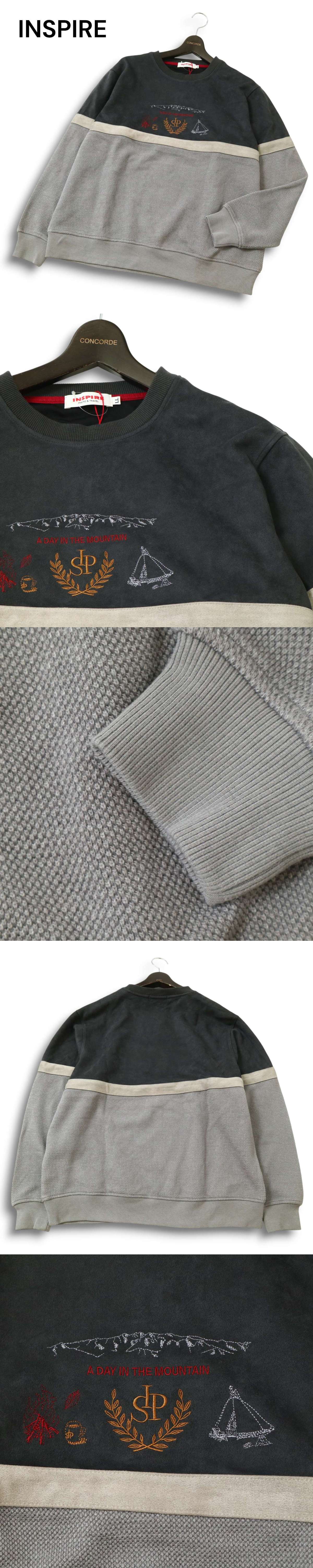 【新品 未使用】 INSPIRE インスパイア A DAY Y IN THE MOUNTAIN★ 切替 刺繍 トレーナー プルオーバー Sz.LL メンズ 大きい 收藏
