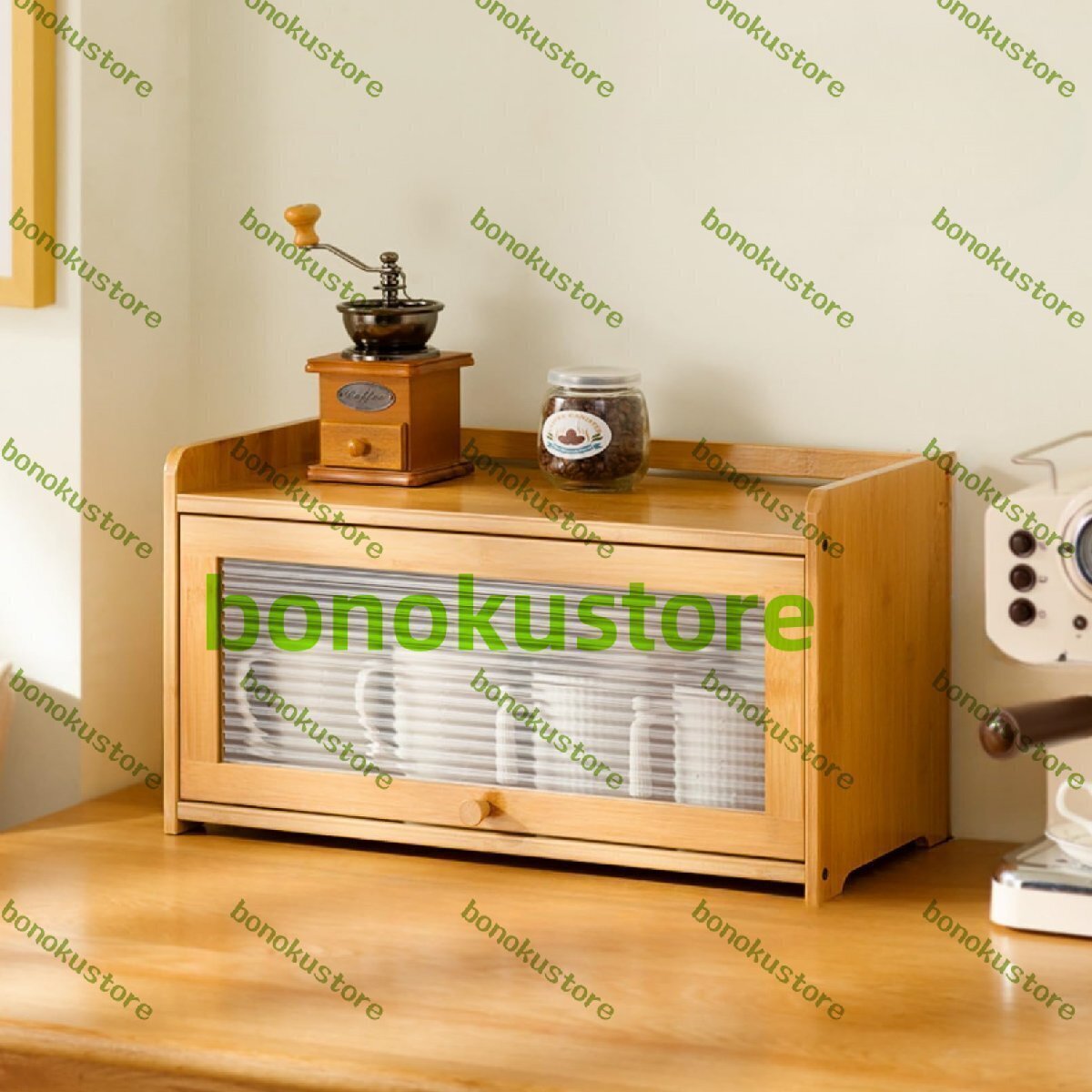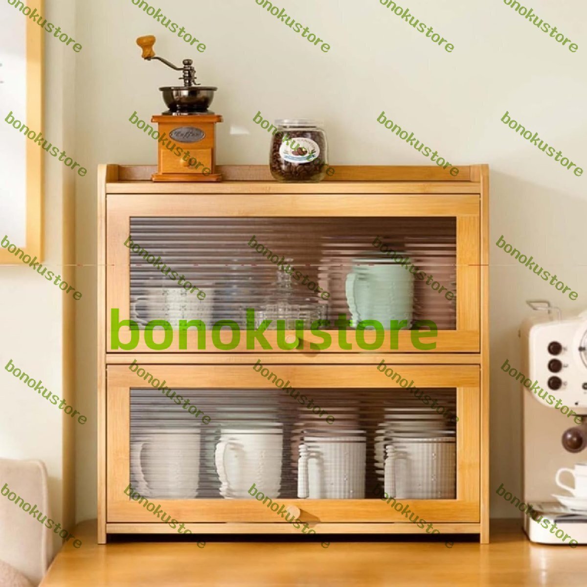 食器棚 キッチン収納 キッチンカウンター 竹製 キッチン 食器 キッチンキャビネット 小型 ガラス扉 一人暮らし 収納棚 (42*25*50cm) 收藏