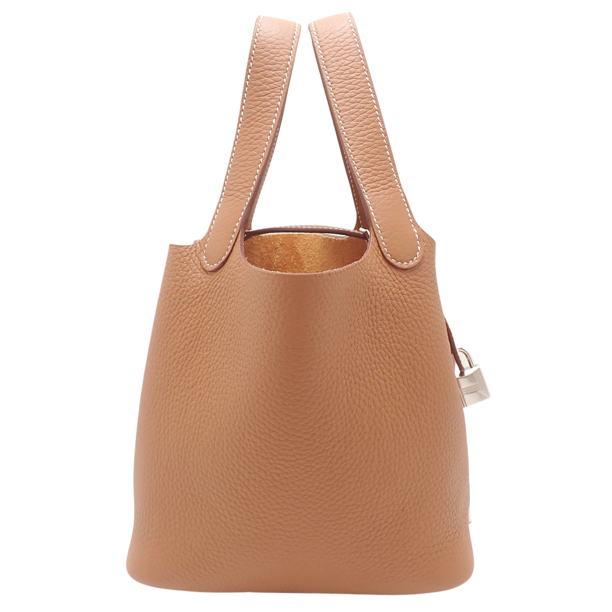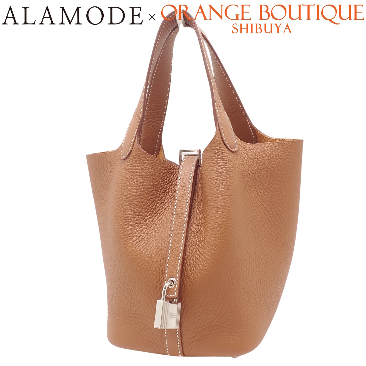 【未使用】HERMES(エルメス) ピコタンロックPM ゴールド ブラウン茶 シルバー金具 W刻印 ハンドバッグ トート 40802158030【アラモード】 收藏