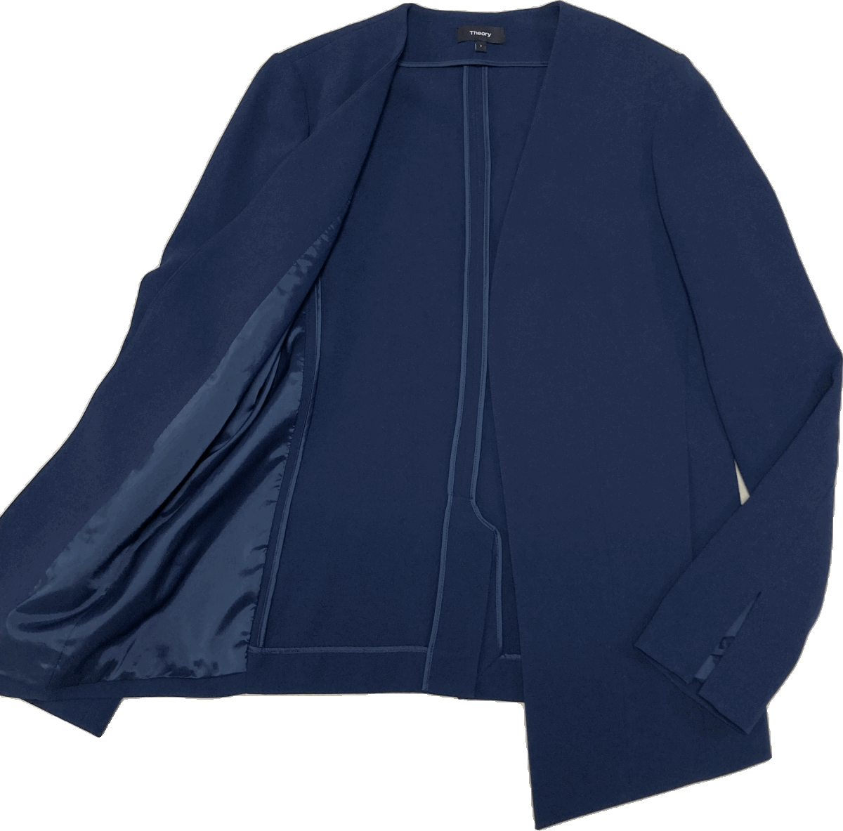 美品☆セオリーtheory トリアセテートポリノーカラーロングジャケット 紺2☆ 收藏