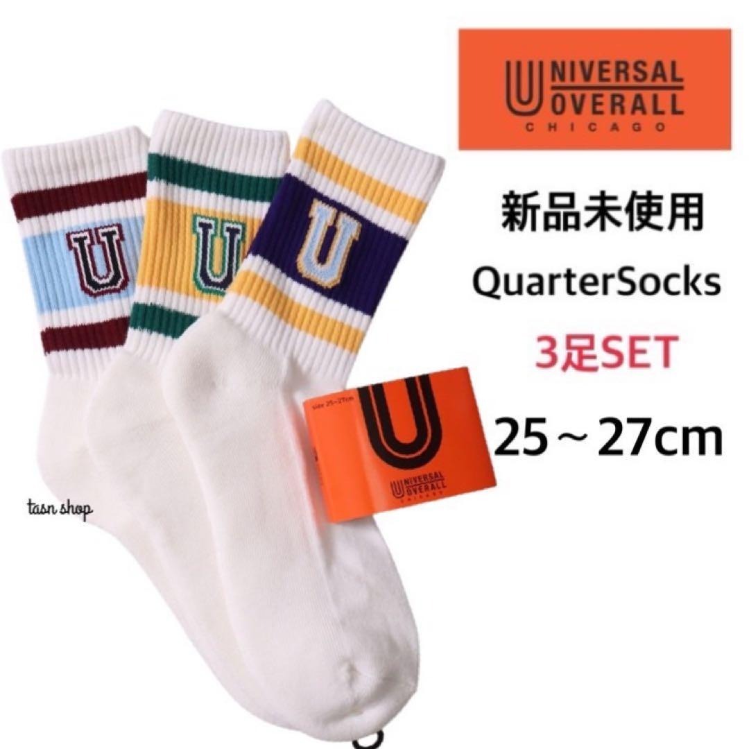 【ユニバーサルオーバーオール】新品 カレッジロゴ ソックス 3足セット 25-27cm 收藏