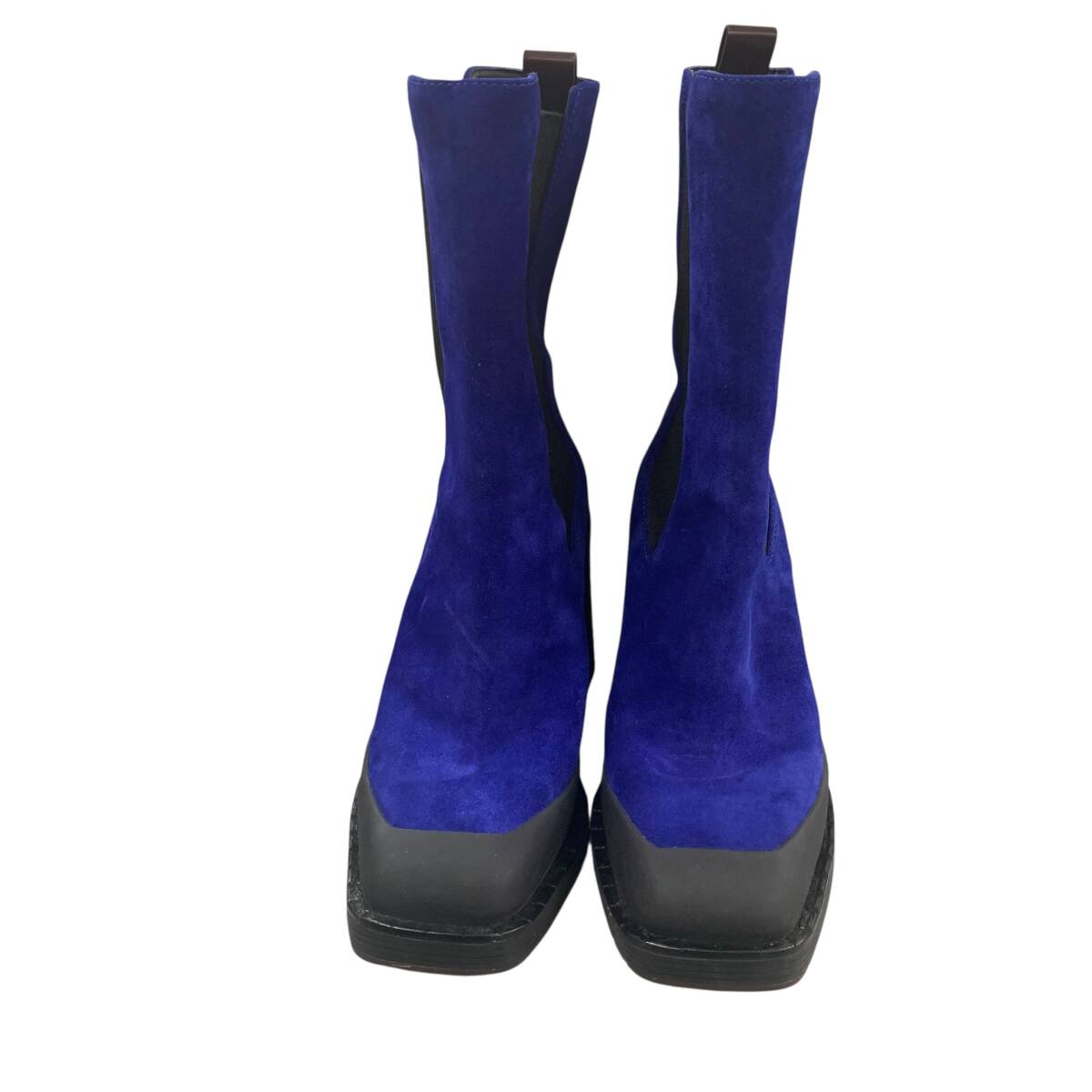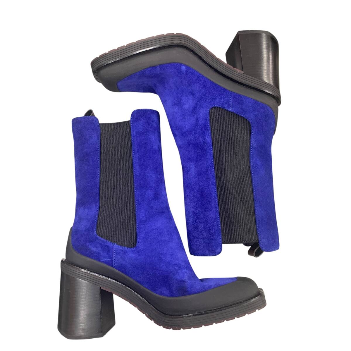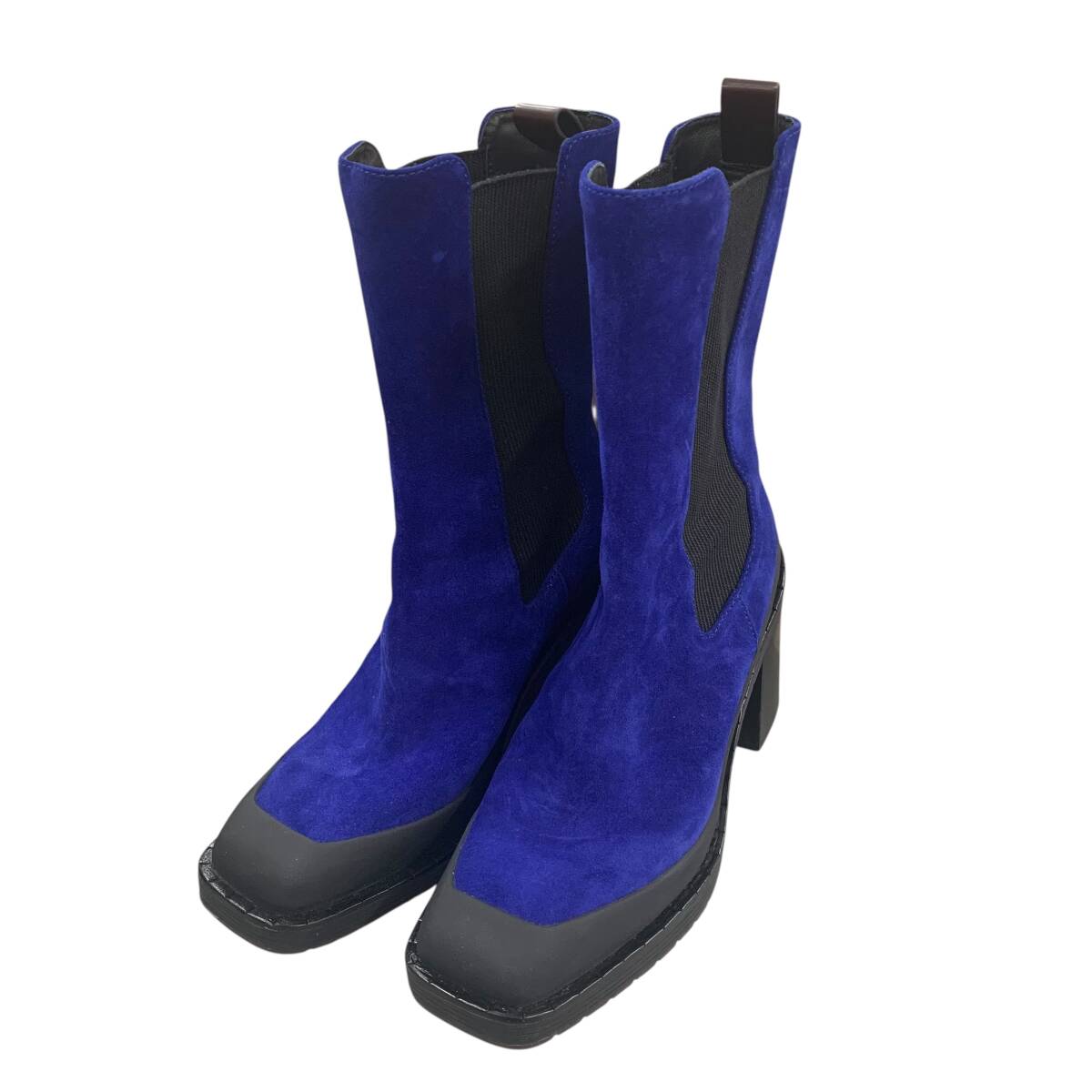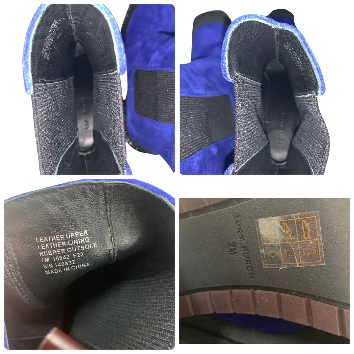 25R383 3 TORY BURCH トリーバーチ エクスペディション チェルシーブーツ 7M 約24㎝ 濃青系 スエード おまけ付き 中古品 收藏