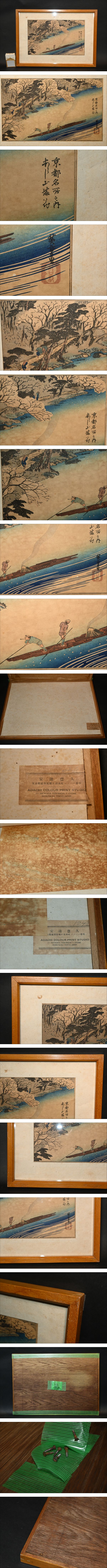 歌川広重 木版画【京都名所之内 あらし山満花】手摺 復刻 浮世絵 版:安達豊久 アダチ版画研究所 紙ラベル 額装 錦絵 京都嵐山 收藏