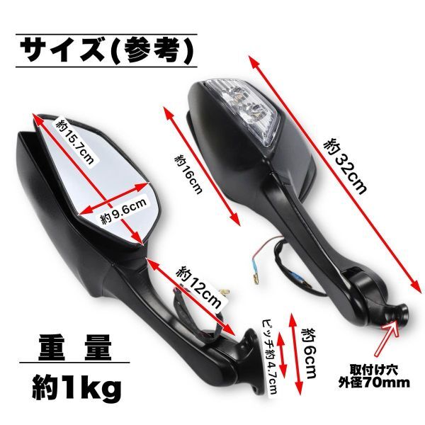 Ninja ZX-10R ZX10R H2 用 バイクミラー LEDライト付き バックミラー カワサキ ニンジャ カスタム パーツ 左右セット ブラック 社外品 386 收藏