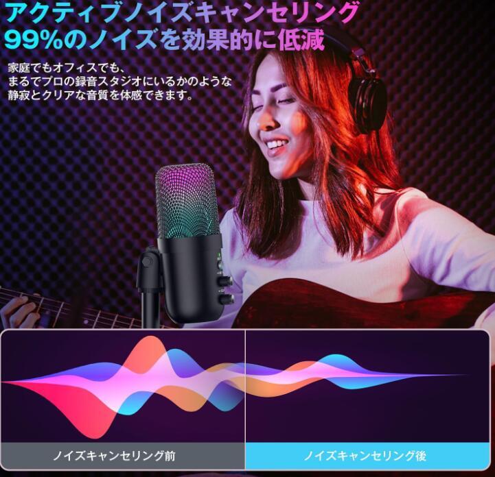 コンデンサーマイク ゲーミングマイク 卓上マイク 192kHz/24bit アクティブノイズキャンセリング エコモード搭載 RGBライト 收藏