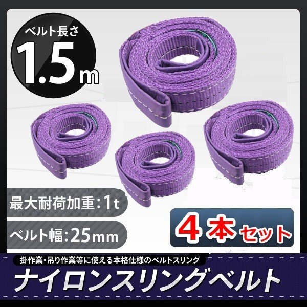 全国一律【送料無料】◆4本セット◆ ナイロンスリングベルト 1000kg 1.5m 幅25mm 耐荷重1t★荷揚げ 吊り上げ 吊り下げ 玉掛け運搬に! 收藏