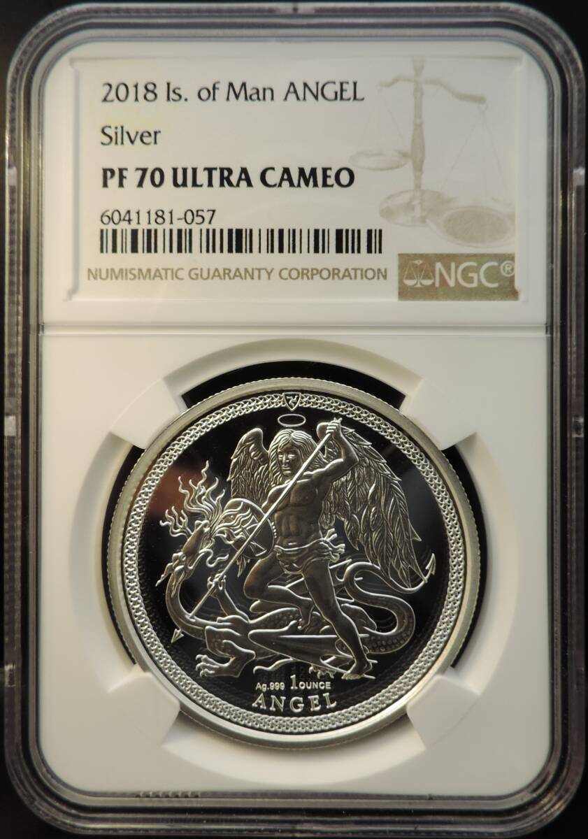【1円スタート】2018年 イギリス領マン島 エンジェル銀貨 NGC PF70UC ウルトラカメオ 最高鑑定 エンゼル 1オンス 2ポンド アンティーク#233 收藏