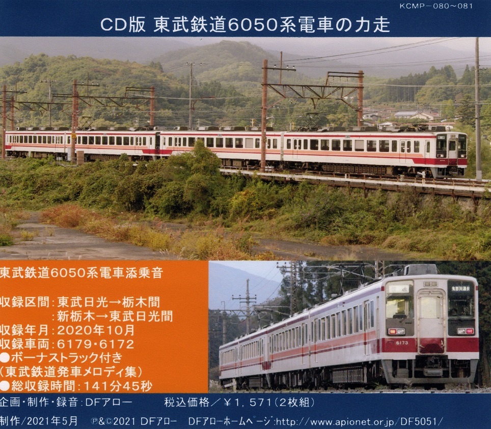 DFアロー・CD版・PR-48・東武鉄道6050系電車の力走です。東武鉄道6050系の走行音を収録したCDです。●新品。JANコード:4573264824287●収録区間:東武日光→栃木間・新栃木→東武日光間。●収録車両:6179・6172●収録年月:2020年10月●ボーナストラック(東武鉄道発車メロディ集)付き。●総収録時間:141分45秒・2枚組。●全2ページの解説書付き。●サンプルサウンドはこちらです。 https://www.youtube.com/watch?v=XtllXbgzYC8