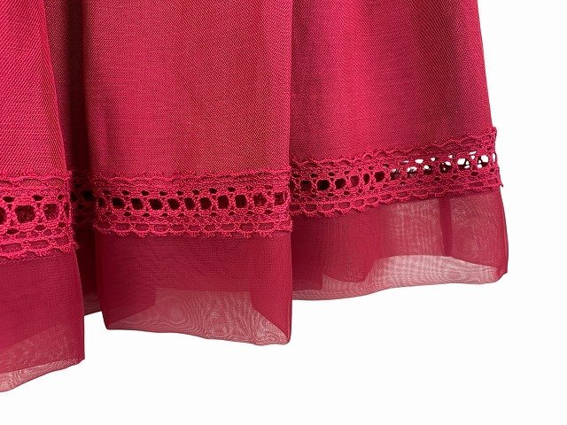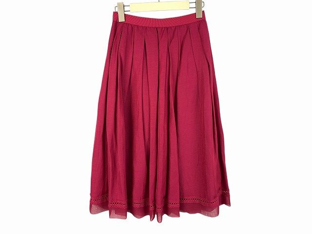 | タグ付き・未使用品同様の中古品です。目立った汚れやダメージなどはありません。裾部分がレースとシフォンの切り替えになっていて右サイドにポケットが付いています。 ※ 状態は、弊社基準により表記をさせて頂いております。 ※ リユース商品の為、表示しきれないダメージなどある場合もございます。 ※ 実店舗業務の運営上、質問にお時間をいただく場合や主観的なご質問にはお答えできかねる場合がございます。 サイズ | | サイズ : 40 【ウエスト】 : 30cm 【ヒップ】 : 55cm 【総丈】 : 73cm すべて平置きでの採寸となっております。 素人採寸ですので、ご参考程度にお願いします。 付属品 | ※ 出品商品はお写真に写るものが全てとなります。 | ※ ハンガー・スタンド等、備品を用いて撮影している場合がございますが、備品は付属いたしません。 店舗名 | 朝日店 | 発送について | ゆうパック、もしくは 佐川急便、ヤマト運輸(選択は出来ません) 元払のみの発送です。管理上その他の発送方法には、対応できません。お問い合わせは、ご遠慮願います。 | お支払いについて | 落札金額 + 消費税 + 送料 のお支払いとなります。 | 送料は送料欄にて、お届け先の都道府県をご選択頂き確認をお願い致します。 ※ 離島など別途追加が必要な場合もございます。 ※【お支払方法】銀行振込・代引きには対応しておりません。 同梱について | ※ 発送の拠点が複数ございます。同梱できない場合は個別配送となりますので、ご容赦下さい。 | ご落札の流れ | !ストアが出品した商品を落札した場合、個人が出品した場合とは取引方法が異なります。また、ストアとの取引では商品受け取り後の受け取り連絡は必要ありません。 | >> ! リンクはコチラ ご注意事項 | お写真は撮影時の状態です。 | 店頭にて併売しているお品はコンディションが変わる場合もございます。 購入時に著しくコンディションが変わってしまっている場合はご連絡いただければ真摯に対応致します。 お色・状態に関しては、モニター環境や、太陽光・室内ライトなどの環境により、見え方が違う事もございますので、ご理解頂ければ幸いです。 中古品ですのでノークレームノーリターンでお願い致します。 材質タグがある場合は、写真撮影しておりますので そちらでご確認願います。 他店舗でも同時に販売しておりますので、売り切れの際は ご容赦頂ければ幸いです。 |