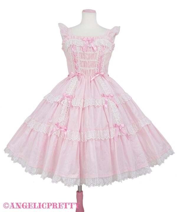 ■Angelic Pretty■Romanticティアードジャンパースカート ピンク■ロリータロリィタガーリートーションレース薔薇シャーリングJSK編み上げサテンリボン
