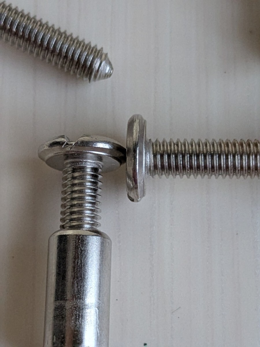 組み合わせて頭の外側間の長さは、一番奥までねじ込んで31.7mmくらい、外れるまで緩めてから2週ねじ込んだ状態で42.2mmくらいです