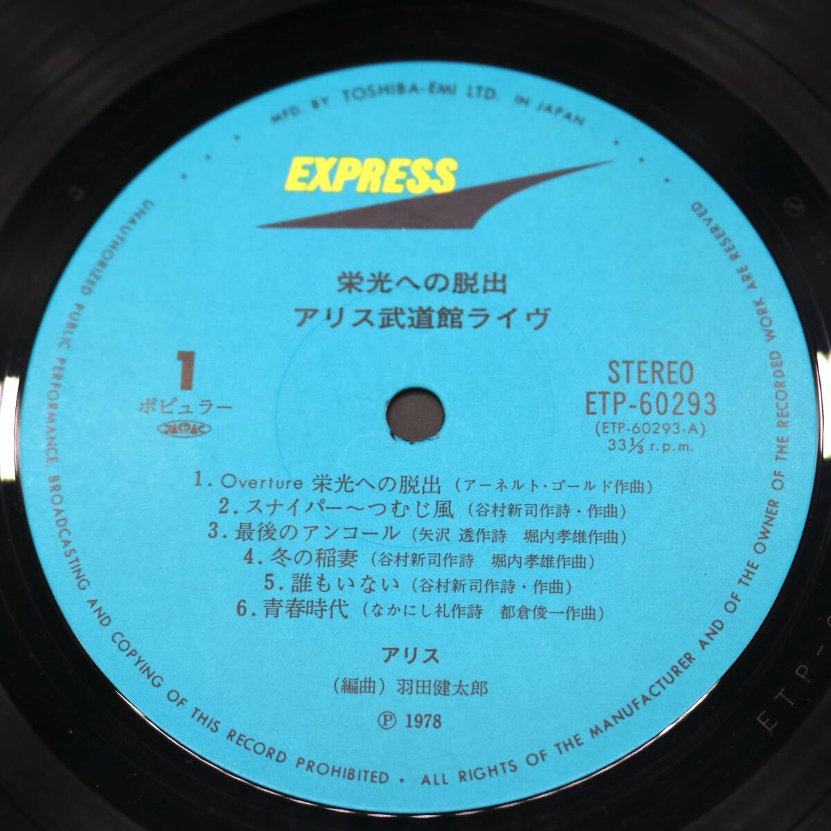 C1135 アリス Alice 栄光への脱出~武道館ライブ ETP-60293 アンティーク コレクション 收藏
