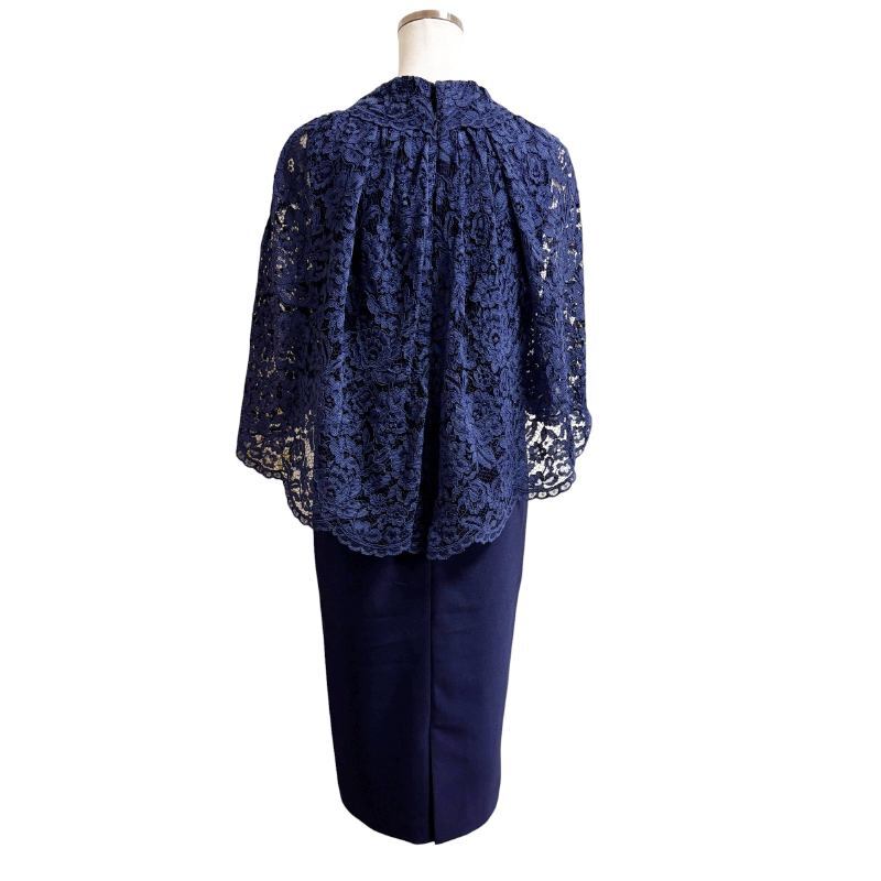 GIRL オフィスカワノ レディース イブニングドレス 袖付き フォーマルワンピース 50代 ブラウス付き ネイビー 紺 M 收藏