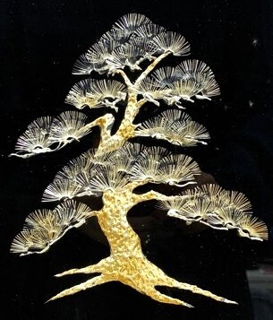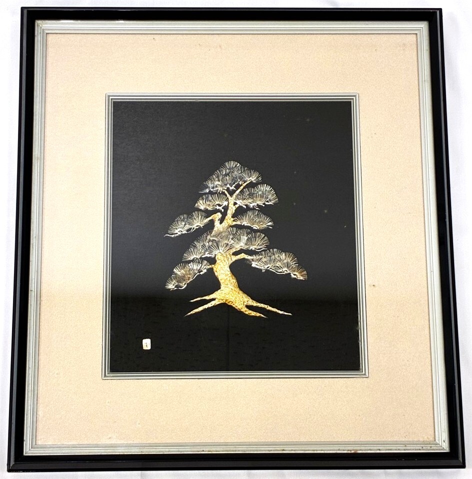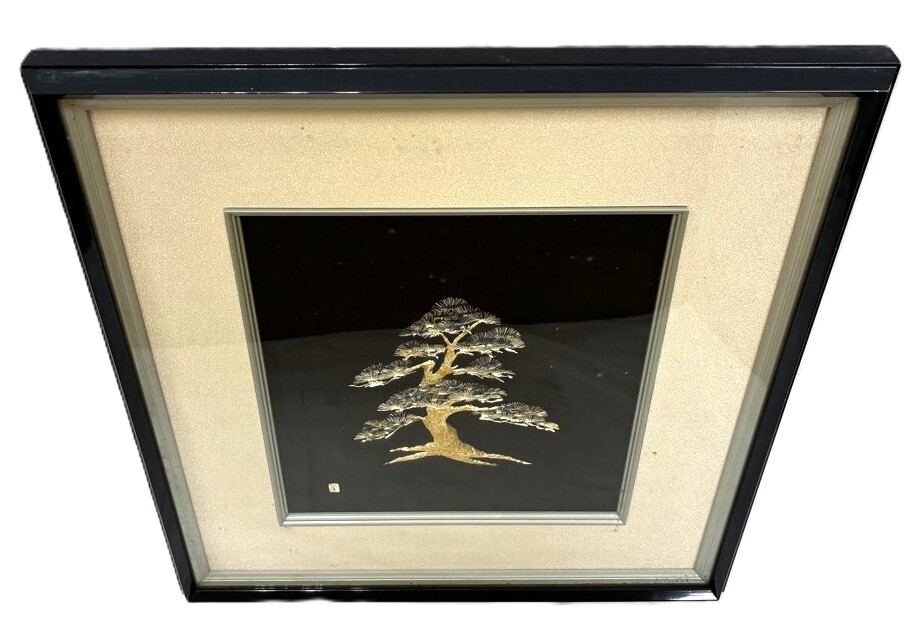 (HE4044) 銀細工 純銀 松 額装 飾額 壁掛け 額縁 工芸品 アート 純銀松 アンティーク インテリア コレクション 縁起物 收藏