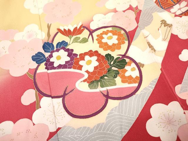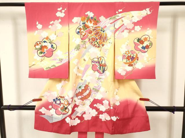 平和屋着物[]お宮参り 女の子 祝着 産着 初着 のしめ 鞠 熨斗飛鶴花文 暈し染め 金銀彩 逸品 DAAW2854ma 收藏