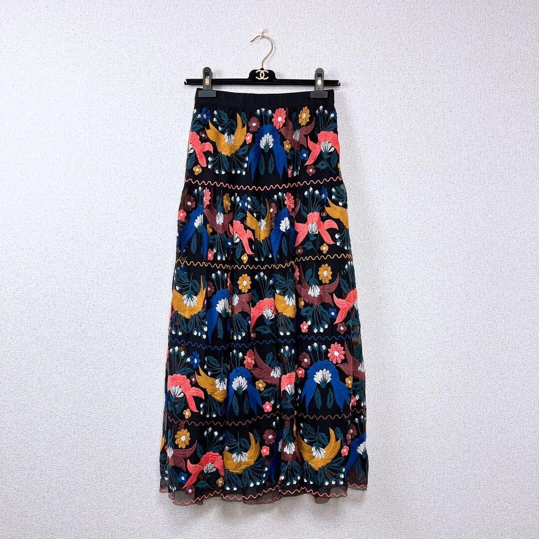 グレースコンチネンタル マルチ 刺繍 スカート ロング 花柄 チュール フレア 收藏
