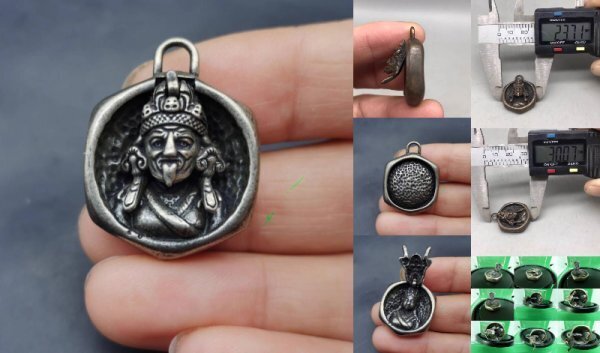 白銅製の“ザキ・ラム護法尊”片の両面仏像携帯用ペンダント