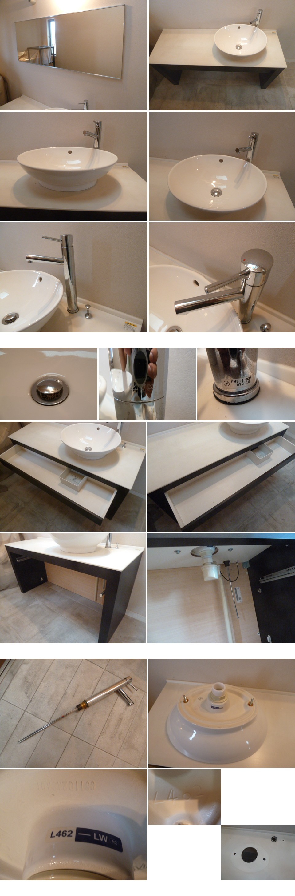 【展示品】洗面化粧台 ミラー 間口1410mm アサヒ衛陶 オーバル 洗面ボウル L462 6L 陶器 洗面台 1面鏡 混合水栓付 收藏