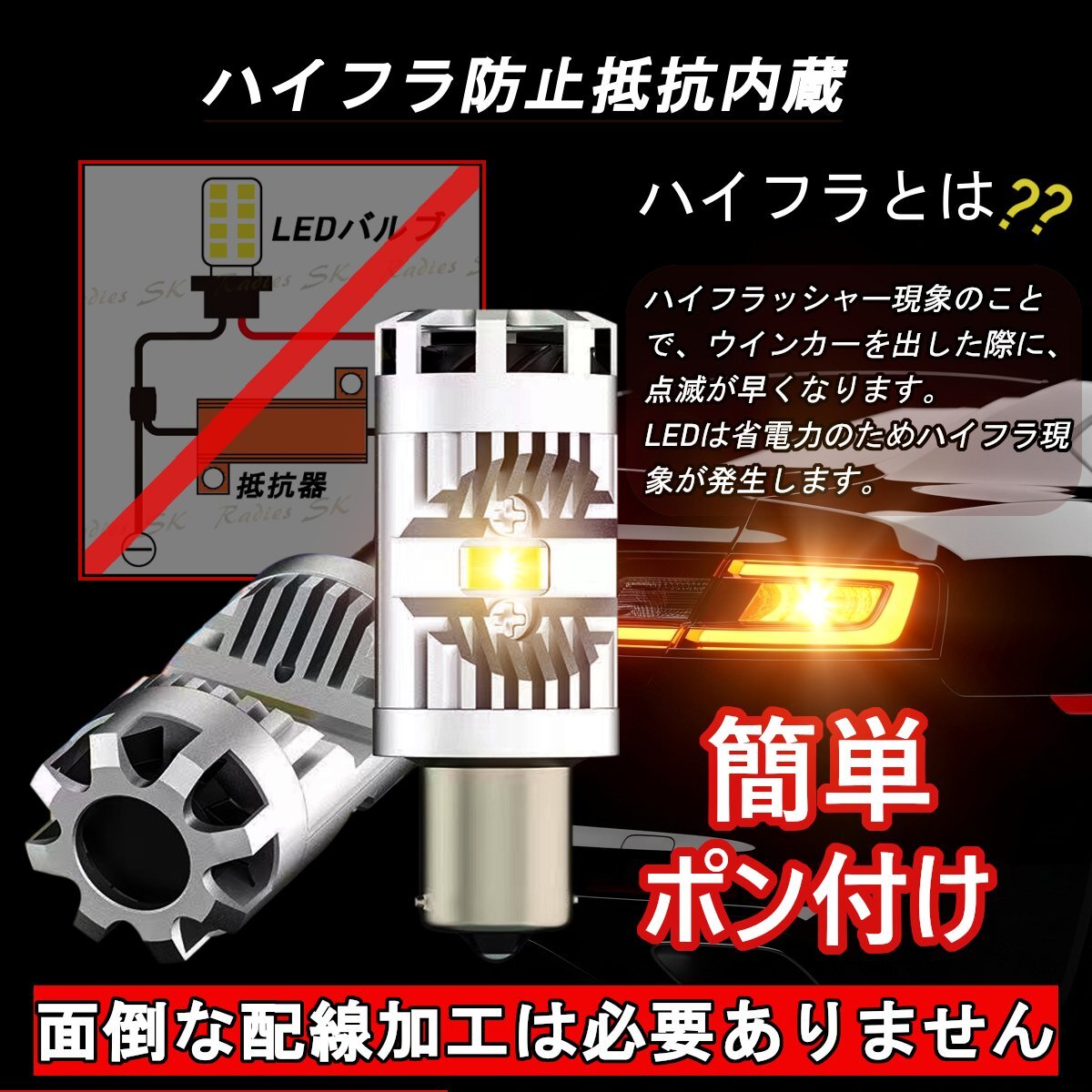 爆光 ウインカー LED T20 抵抗内蔵 オレンジ アンバー ウインカー球 12V ピンチ部違い ファン付 3570チップ8000lm 1年保証 2球 Radies SK 收藏