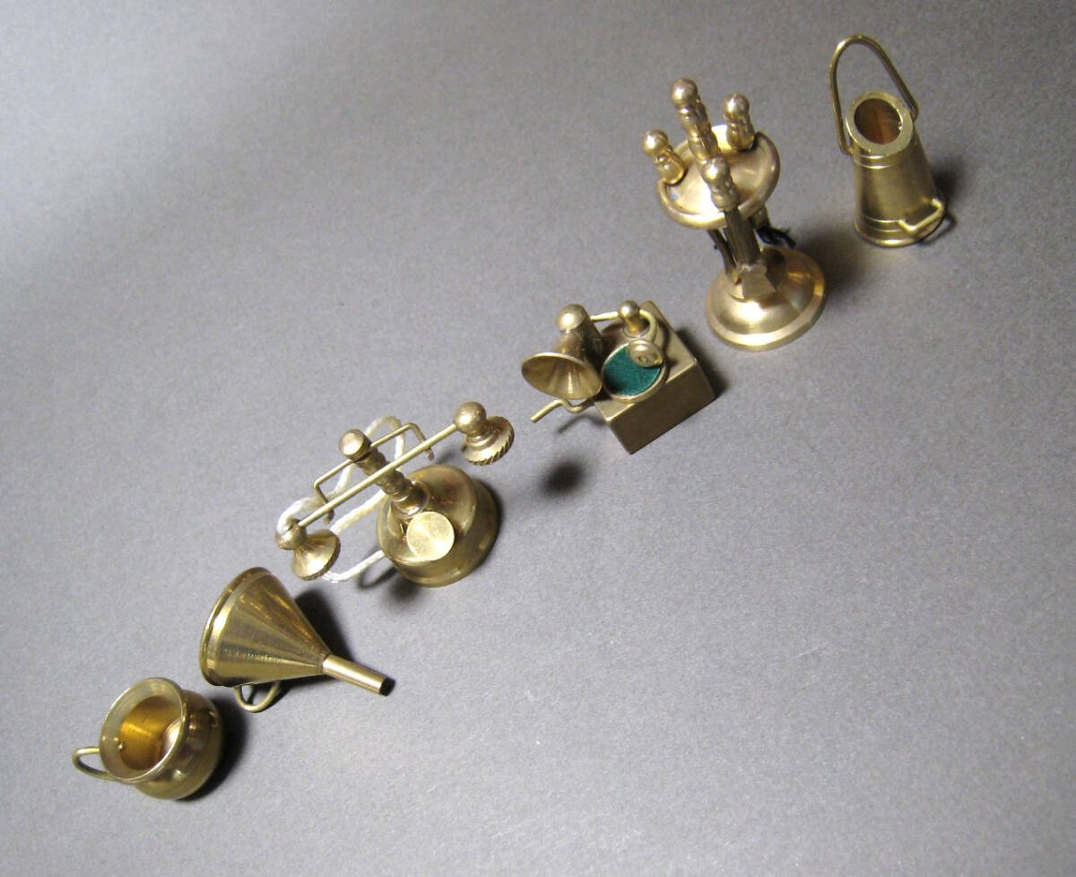 ミニ インテリア イタリア製 Massiv Messing 真鍮製 未使用 ミニチュア 家具 アンティーク調 電話 蓄音機 バケツ 暖炉火かき棒 收藏