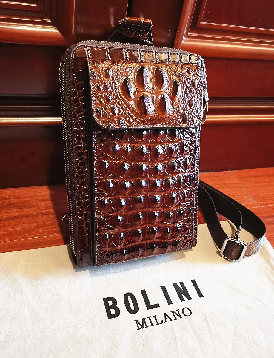 最上逸品*18万◆イタリア・ミラノ発*BOLINI/ボリニ・最上級牛革・クロコダイル*ショルダーバッグ/リュックサック・茶色 收藏