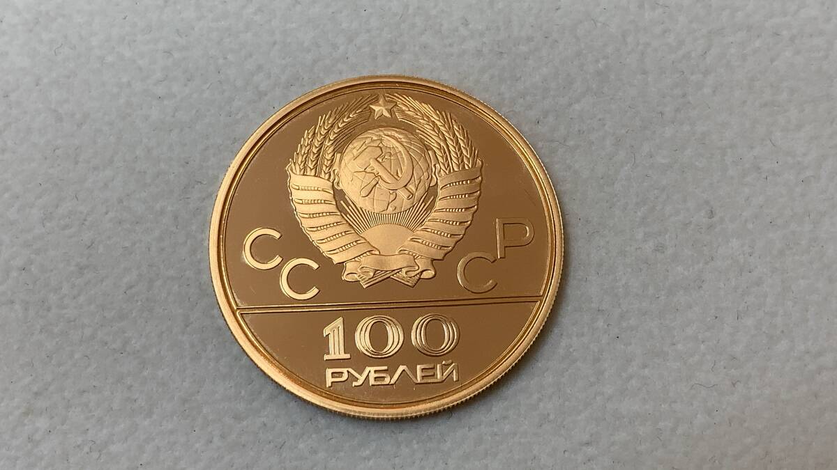 【保管品/オリンピック】1979年 K21.6 モスクワオリンピック 金貨 17.4g ソ連 ロシア 100ルーブル 通貨 貨幣 ゴールド 記念 I251023 收藏