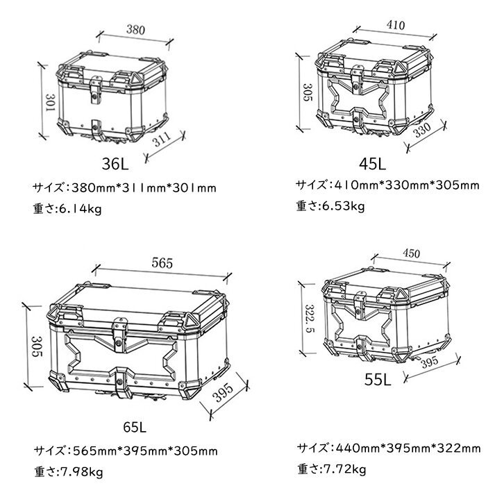 【アルミ製 容量55L】リアボックス トップケース パニアケース 防水 軽量 フルフェイス収納可 背もたれ別売り ベース/工具付き 着脱簡単 收藏