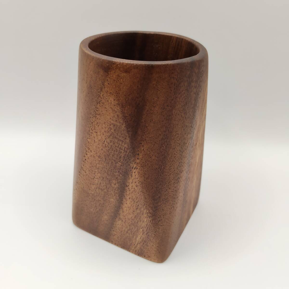 樹種は不明ですが、ウォールナット調の木材を削り出して作られているので継ぎ目がありません。