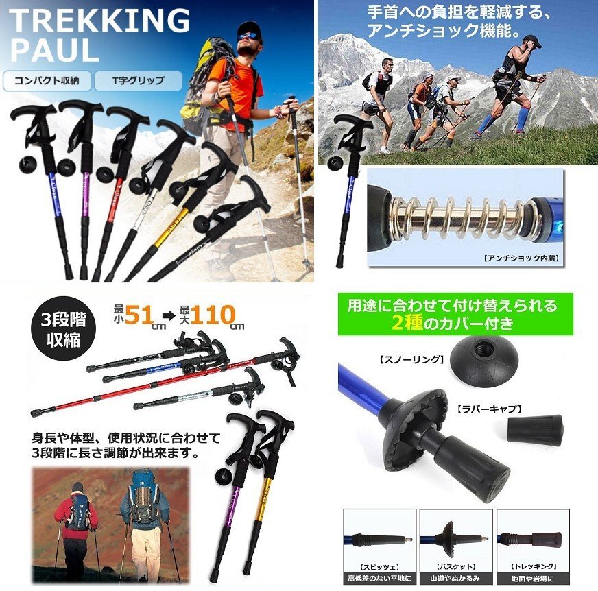 【vaps_4】T型グリップ トレッキングポール 2本セット 《レッド》 トレッキングステッキ トレッキングストック 送込 收藏