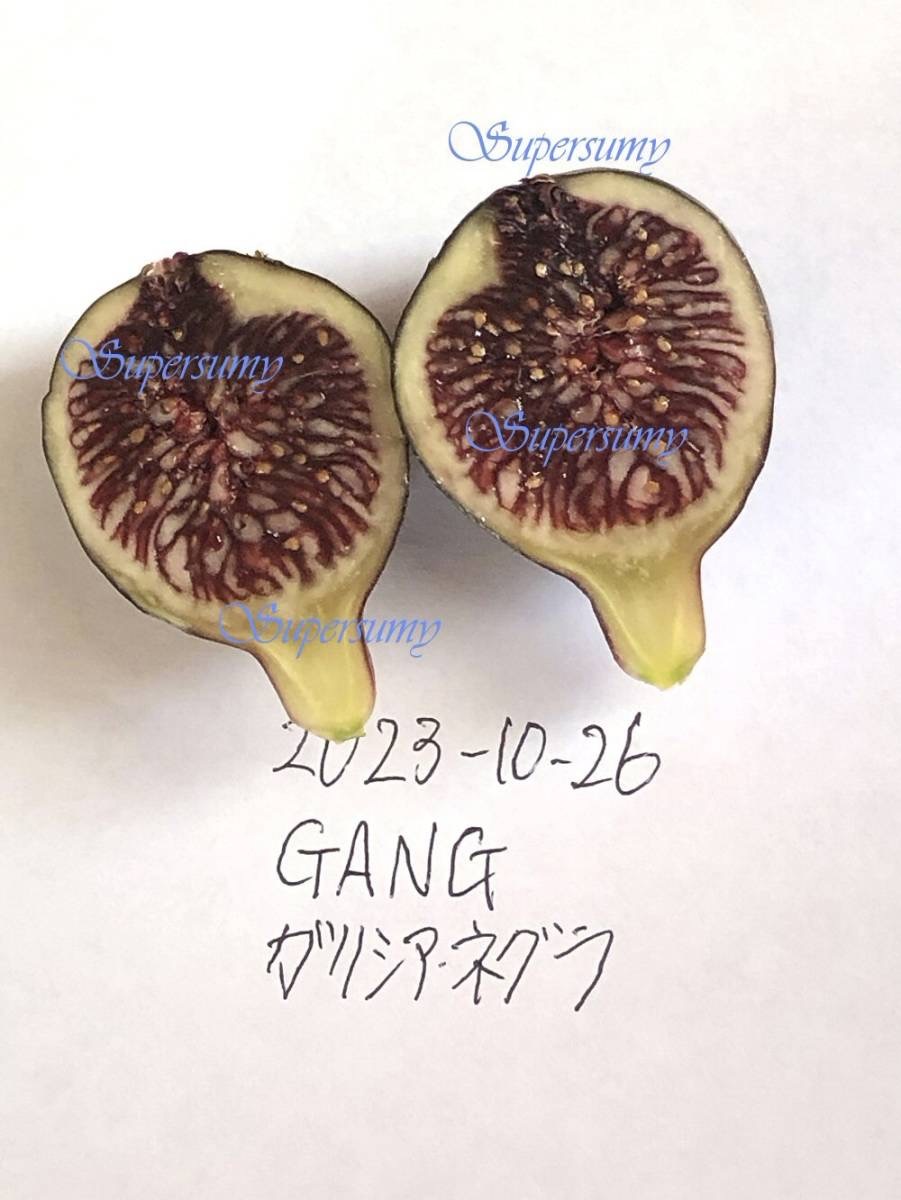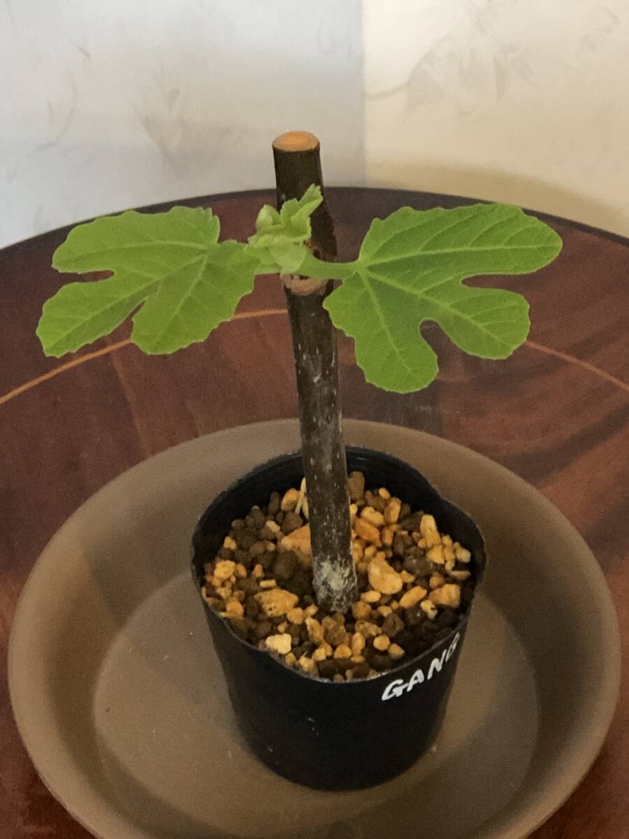 実際に栽培した感想は、樹勢が強く挿木初年度から真っすぐに枝を伸ばしてきます。この品種、一般には3年目以降でないと実は付けないと言われていましたが、水やり頻度は大変でしたが、小さな鉢で根域制限したところ、先端部に4つほど着果し、最良な一つに摘果しました。この苗が間違いなくGalicia Negraであることを確認するのが目的でしたので、実の色や形状や果肉の色が確認できれば目的達成と、味の方は期待していませんでしたが、美味しさは最高クラスで、ベリーとキャラメルとが混合したようなクリーミーな食感で、とにかく濃厚、美味、チョコレートではないのですが、雰囲気はチョコレートケーキのようであり、ブラックマデイラ系とは異なる甘くて美味しい黒イチジクです。