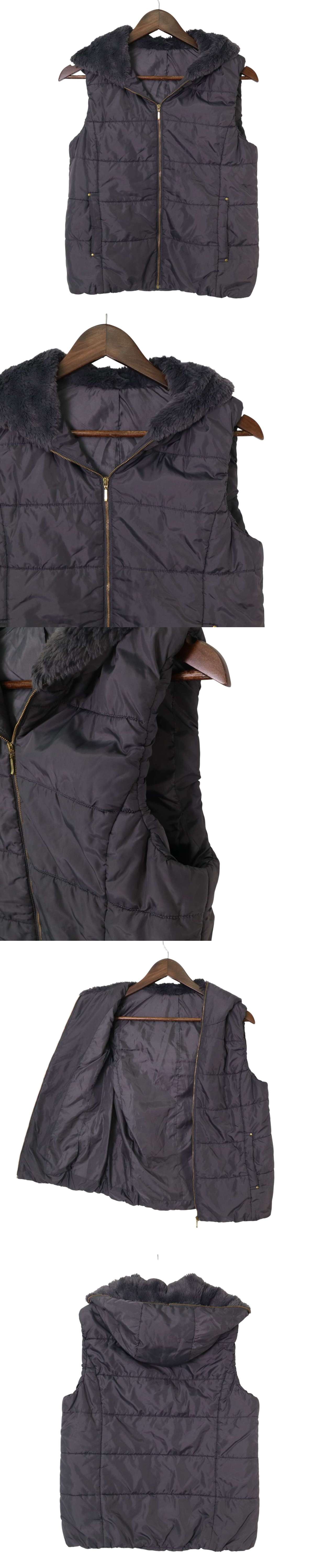 NOLLEYS ノーリーズ 秋冬 フェイク ファー★ 中綿 ベスト フード ノースリーブ ジャケット Sz.9R レディース 灰 收藏
