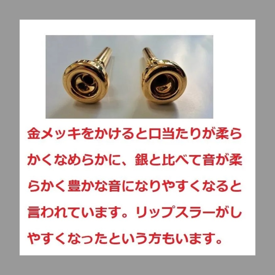金メッキをかけると口当たりが柔らかくなめらかに、銀と比べて音が柔らかく豊かな音になりやすくなると言われています。