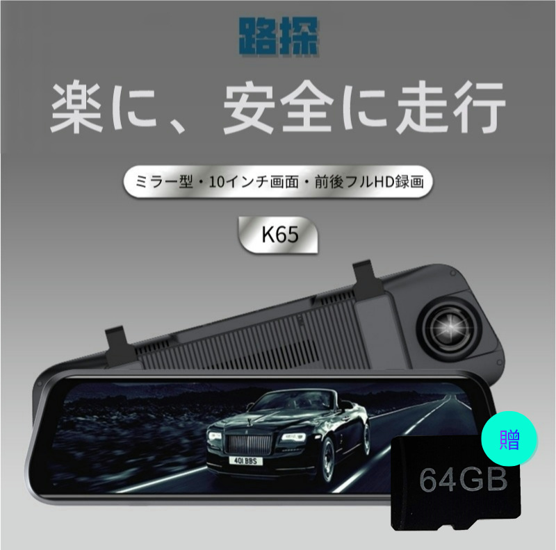 64GBmicroSDカードをプレゼント 新品 ミラー型 ドライブレコーダー 10インチ 前後カメラ同時録画 地デジ・ナビ電波干渉対策済 画質1440P 收藏