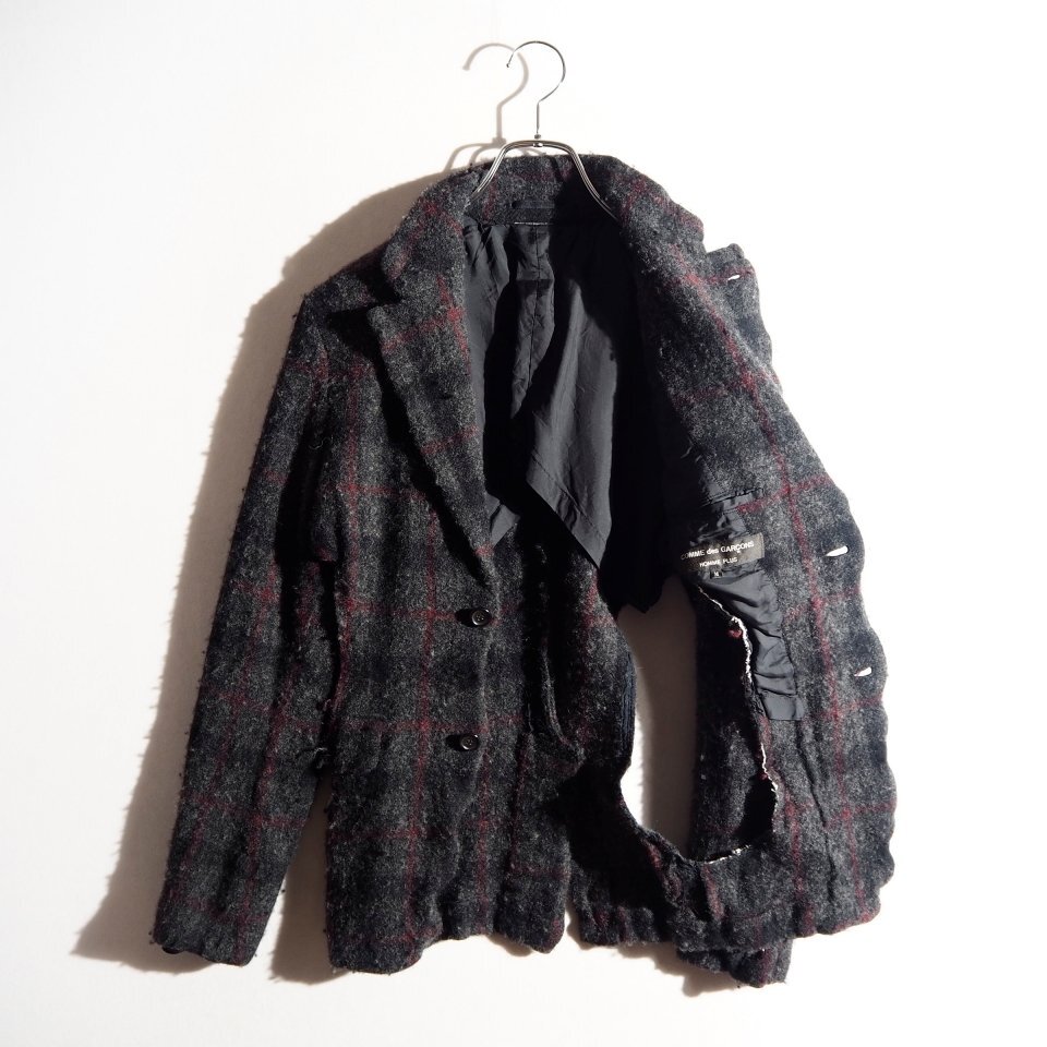 P8586P ▼COMME des GARCONS HOMME PLUS コムデギャルソン ▼ 24AW 縮絨 カットアウト ウール ジャケット グレーチェック M 秋冬 rb mks 收藏