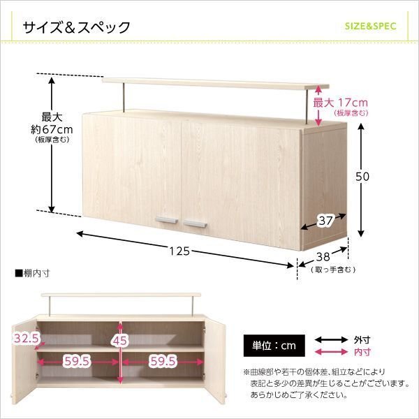 【カラー】 ウォールナット、ホワイトオーク 【サイズ】 (約)幅125x奥行き37x高さ50?65cm 【重量】 (約)22.5kg 【材質】 材質:パーチクルボード、MDF 表面加工:プリント化粧合板、PVC(エコファ) 【梱包】 サイズ:(約)143x53x13cm(3.6才) 重量:(約)24kg 【組み立て品】 お客様による組み立てが必要です。 |