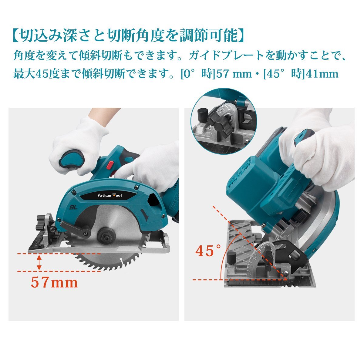 コードレスマルノコ 165mm 丸のこ ブラシレスモーター搭載 電動のこぎり 丸鋸 マキタ18v バッテリー専用 バッテリー2個付き 收藏