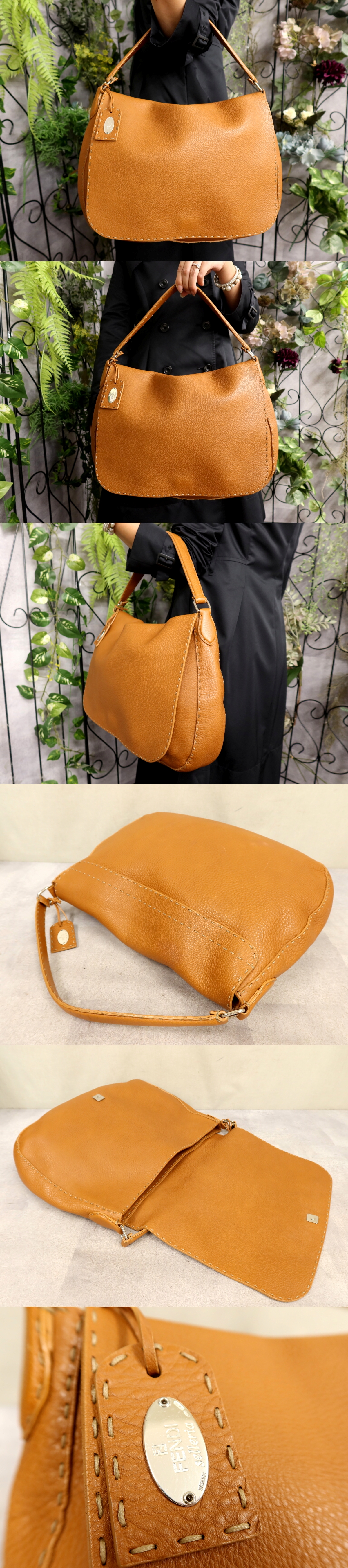 ●超美品●FENDI フェンディ●セレリア●フラップ●カーフ レザー 本革●ハンド バッグ●キャメル●シルバー金具●A4 収納 かばん●Js61669 收藏