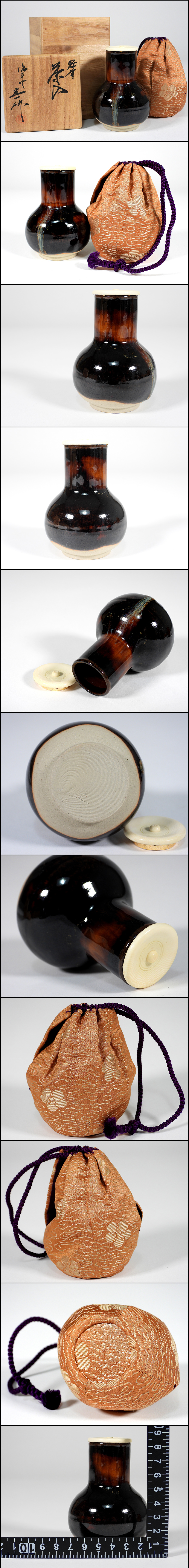 【騰立】瀬戸焼 茶陶の名工 瀬戸圭一作 鶴首 茶入 仕覆 共箱 煎茶道具■A861/45-1 收藏