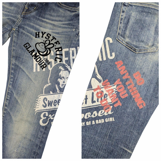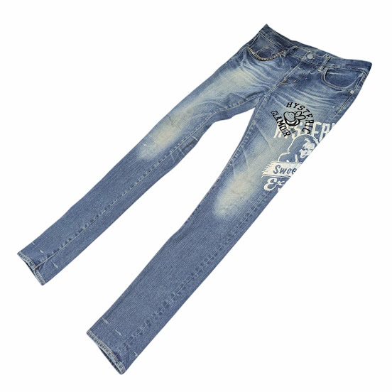 22 HYSTERIC GLAMOUR ヒステリックグラマー スタッズ スキニーパンツ インディゴブルー ガールプリント 0142AP06 サイズ S 收藏